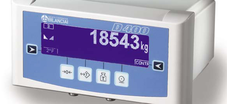 Innovative terminals, designed to satisfy the new requirements of a market in constant evolution. The D 400 electronic terminal ensures maximum ease of dialogue with the operator, thanks to a backlit graphic display which is extremely simple to use and offers the facility of changing the shape and size of characters to suit different operating conditions. Rack-mounting and tabletop versions are available, both presenting similarly compact dimensions. This is a weighing terminal with a notably versatile range of use: from simple weight display to automation systems for industrial process. The product bears the EC mark in accordance with EEC directive 90/384, and is connectable to any type of load cell. Monoscale and multirange versions are available.